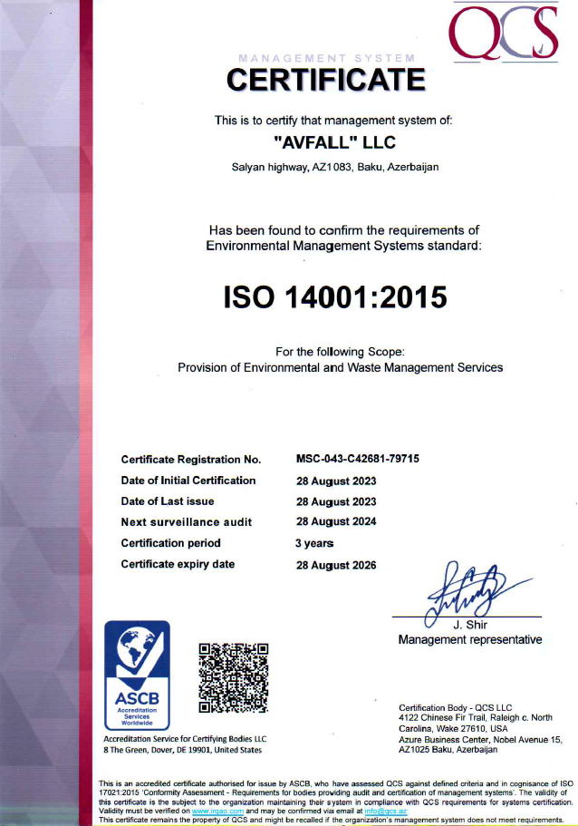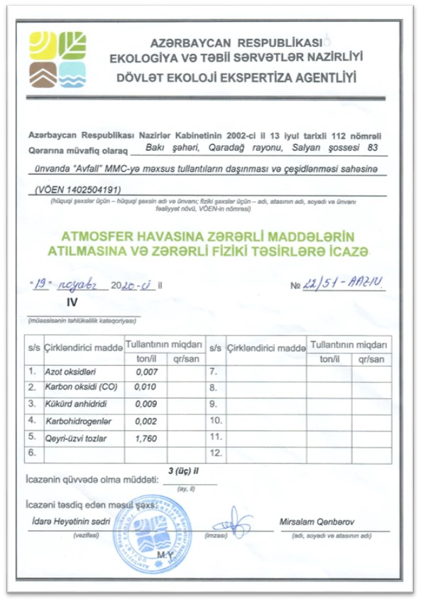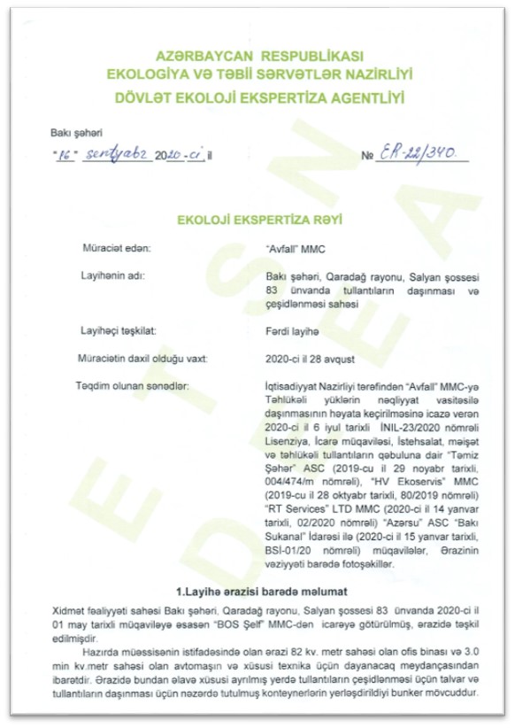 Tullantıların Mərkəzi Yığılması Ərazisi üzrə Əməliyyatlar